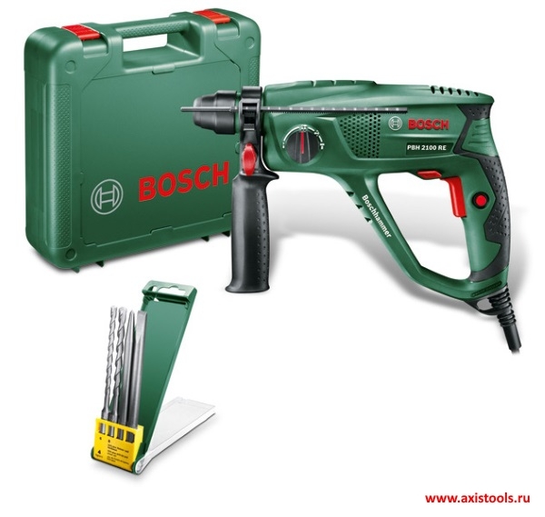 Мощный и удобный перфоратор PBH 2100 RE 06033A9302 предназначен для сверления с ударом в кирпиче, бетоне, камне, а так же для сверления без удара в дереве, стали, синтетических и других материалах
