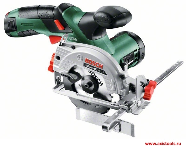 - Компактная и практичная аккумуляторная циркулярная пила UniversalCirc 12 06033C7002 для высокоточных пропилов в древесине