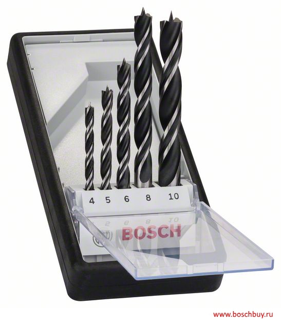 Описание Bosch 2607010527, 2 607 010 527, 2.607.010.527 Спецификация 4; 5; 6; 8; 10 mm Описание изделия, каталог принадлежностей, серый Набор из 5 спиральных свёрл по древесине Robust Line