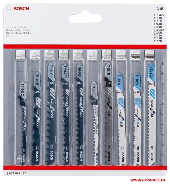 Пилка для лобзика for Wood and Metal, набор 10 пилок по дереву и металлу (2 607 011 170, 2607011170, 2.607.011.170)