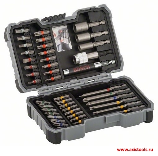 Набор бит и головок Bosch 2607017164 для шуруповерта 43 предметов, с тремя торцевыми кючами, с быстросменным универсальным держателем и универсальным магнитным держателем.