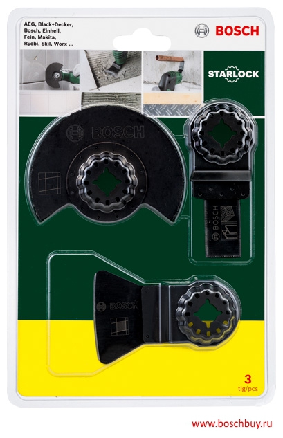 1 погружное пильное полотно Starlock BIM Wood and Metal 1 сегментированный пильный диск Starlock Carbide LMT Basic, Grout and Abrasive 1 шабер Starlock HCS Multi Material Комплектация