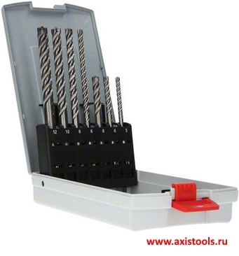 Набор буров SDS plus-7X 2607017502 предназначен для сверления отверстий различного диаметра и глубины в армированном бетоне и камне