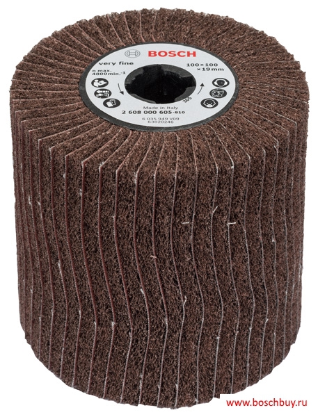 Описание Bosch 2608000605, 2 608 000 605, 2.608.000.605 Ламельный шлифвалик нетканный 100х100х19 очень мягкий