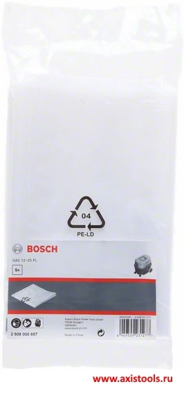 Пылесборные мешки 2608000697 предназначены для использования в пылесосе GAS 12-25 PL Professional