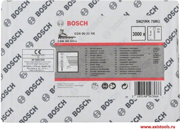 Рифленые гвозди 2608200037 с круглой головкой в обойме идеально подходят для гвоздезабивателя GSN 90-21 RK Professional