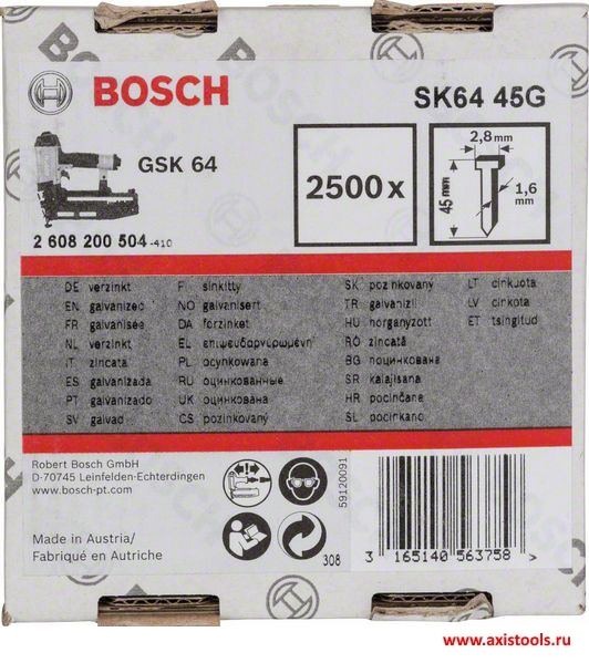 Штифты с потайной головкой 2608200504 идеально подходят для пневматического гвоздезабивателя Bosch GSK 64 Professional