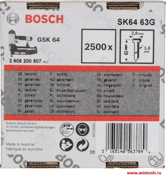 Штифты с потайной головкой 2608200507 идеально подходят для пневматического гвоздезабивателя Bosch GSK 64 Professional