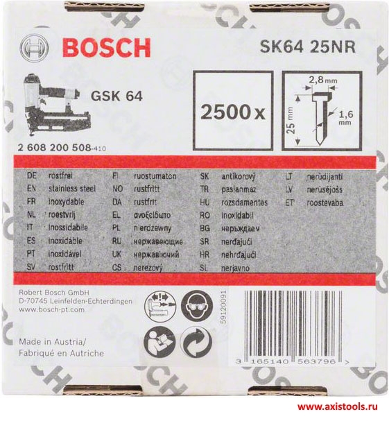 Штифты с потайной головкой 2608200508 идеально подходят для пневматического гвоздезабивателя Bosch GSK 64 Professional