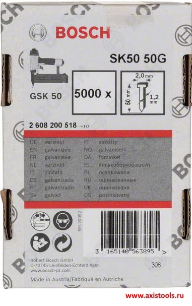 Штифты с потайной головкой 2608200518 идеально подходят для пневматического гвоздезабивателя Bosch GSK 50 Professional