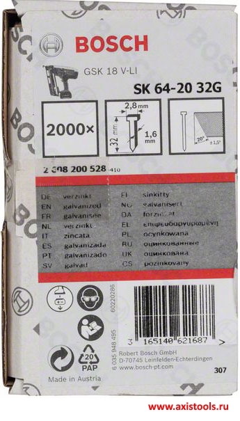 Штифты с потайной головкой 2608200528 идеально подходят для пневматического гвоздезабивателя Bosch GSK 18 V-Li Professional