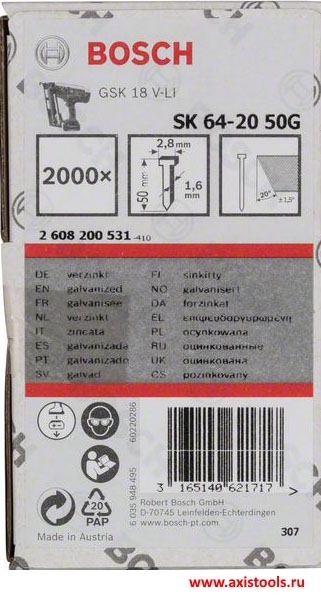 Штифты с потайной головкой 2608200531 идеально подходят для пневматического гвоздезабивателя Bosch GSK 18 V-Li Professional