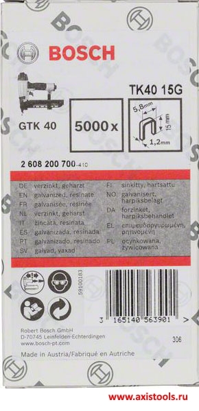 Скоба для пневматического степлера GTK 40, TK40 15G, 5000 скоб 15 мм (2 608 200 700, 2608200700, 2.608.200.700)