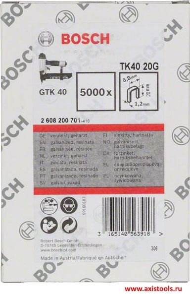 Скоба для пневматического степлера GTK 40, TK40 20G, 5000 скоб 20 мм (2 608 200 701, 2608200701, 2.608.200.701)