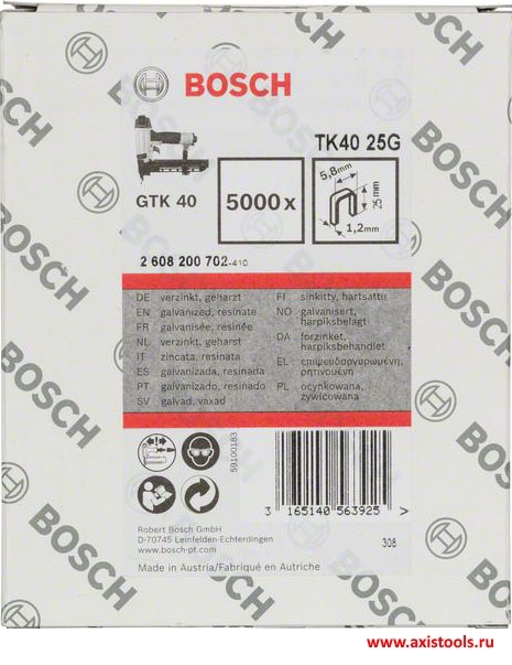 Скоба для пневматического степлера GTK 40, TK40 25G, 5000 скоб 25 мм (2 608 200 702, 2608200702, 2.608.200.702)