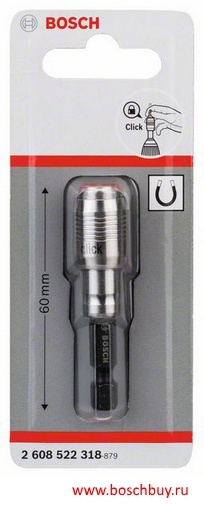 Описание Bosch 2608522318, 2 608 522 318, 2.608.522.318 Функция One-Click и быстрозажимной патрон, с наружным шестигранником 1/4" по ISO 1173 E6.3