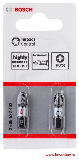 Бита винтоверта Bosch PZ3 25 мм (2 шт.) (2 608 522 402, 2608522402, 2.608.522.402)