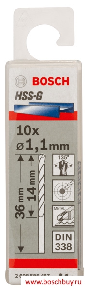 2608585467 Набор 10 сверл по металлу HSS-G 1,1 мм DIN 338