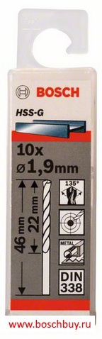 Набор 10 сверл по металлу HSS-G 1,9 мм DIN 338 (2 608 585 474, 2608585474, 2.608.585.474)