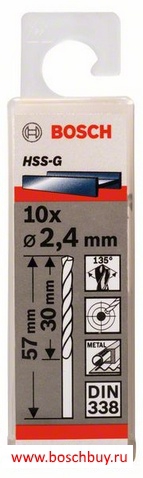 Набор 10 сверл по металлу HSS-G 2,4 мм DIN 338 (2 608 585 477, 2608585477, 2.608.585.477)