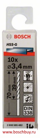 Набор 10 сверл по металлу HSS-G 3,4 мм DIN 338 (2 608 585 482, 2608585482, 2.608.585.482)