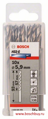 2608585496 Набор 10 сверл по металлу HSS-G 5,9 мм DIN 338
