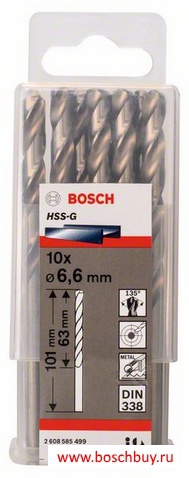 2608585499 Набор 10 сверл по металлу HSS-G 6,6 мм DIN 338