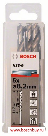 2608585509 Набор 5 сверл по металлу HSS-G 8,2 мм DIN 338