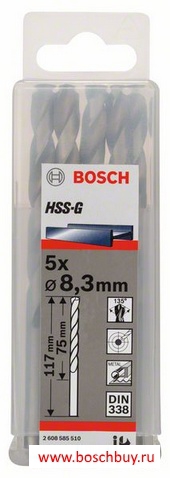 2608585510 Набор 5 сверл по металлу HSS-G 8,3 мм DIN 338