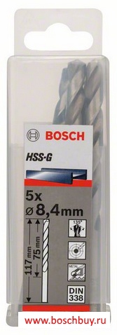 Набор 5 сверл по металлу HSS-G 8,4 мм DIN 338