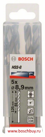 Набор 5 сверл по металлу HSS-G 8,9 мм DIN 338