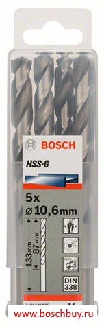 2608585526 Набор 5 сверл по металлу HSS-G 10,6 мм DIN 338