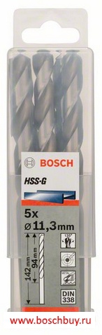 Набор 5 сверл по металлу HSS-G 11,3 мм DIN 338