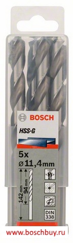Набор 5 сверл по металлу HSS-G 11,4 мм DIN 338