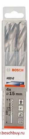 2608585594 Набор 4 сверла по металлу HSS-G 15 мм DIN 338