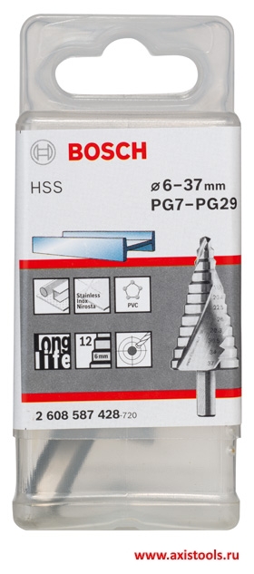 Ступенчатое сверло HSS 6-37 мм 12 ступеней (2 608 587 428, 2608587428, 2.608.587.428, 3165140630221)