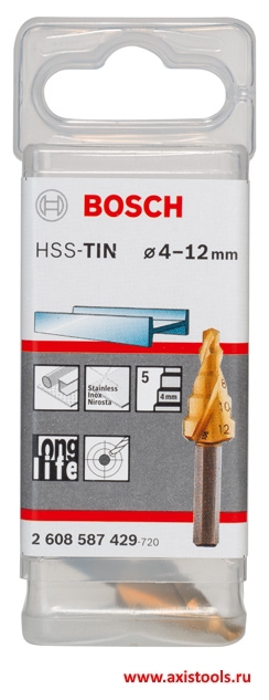 Ступенчатое сверло HSS-TiN 4-12 мм 5 ступеней (2 608 587 429, 2608587429, 2.608.587.429)