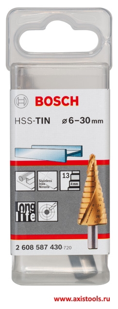 Ступенчатое сверло HSS-TiN 6-30 мм 13 ступеней (2 608 587 430, 2608587430, 2.608.587.430, 3165140630245)