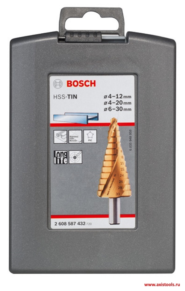 Набор 3 ступенчатых сверла Bosch HSS-TiN Pro Box 2608587432
