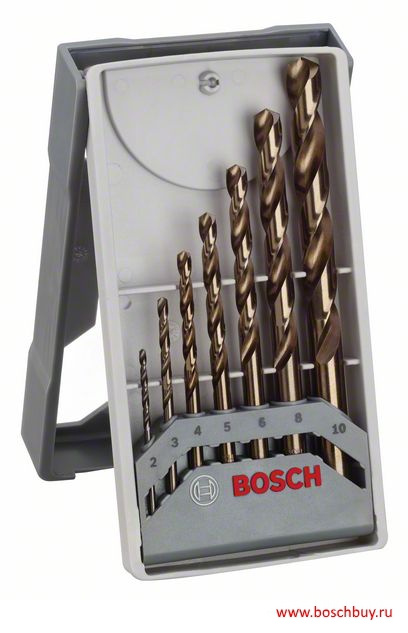 Описание Bosch 2608589296, 2 608 589 296, 2.608.589.296 Спецификация 2; 3; 4; 5; 6; 8; 10 mm Описание изделия, каталог принадлежностей, серый Набор из 7 сверл по металлу HSS-Co, DIN 338, 135°