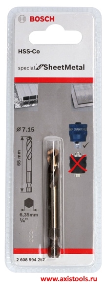 Описание Bosch 2608594257, 2 608 594 257, 2.608.594.257 Центрирующее сверло HSS-Co 7.15х65 мм для переходников Power-Change Plus