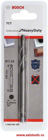 Центровочное сверло 2608594260 для переходников Power-Change Plus отлично подойдет для работы с кирпичом, абразивными материалами и мягкой плиткой