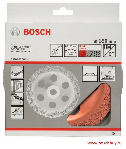 Оснастка и принадлежности Bosch > Принадлежности для угловых машин, машин мокрой шлифовки, бороздоделов, шлицефрезеров, шлифователей по бетону и прямых шлифователей