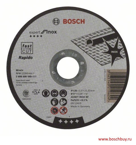 2608600549 Отрезной круг Bosch Expert for Inox Rapido AS 60 T INOX BF 125х1 мм по нержавеющей стали