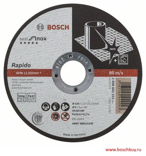 Отрезной круг Bosch Rapido Long Life (A 60 W BF 41) 125х1 мм по нержавеющей стали