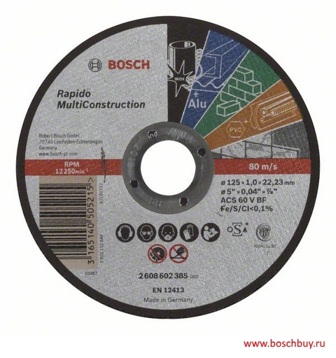 2608602385 Отрезной круг Bosch Rapido Multi Construction (ACS 60 V BF) 125х1,0 мм