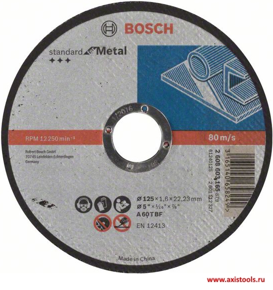 Отрезной круг Standard for Metal 125х1.6 мм по металлу прямой (2 608 603 165, 2608603165, 2.608.603.165)