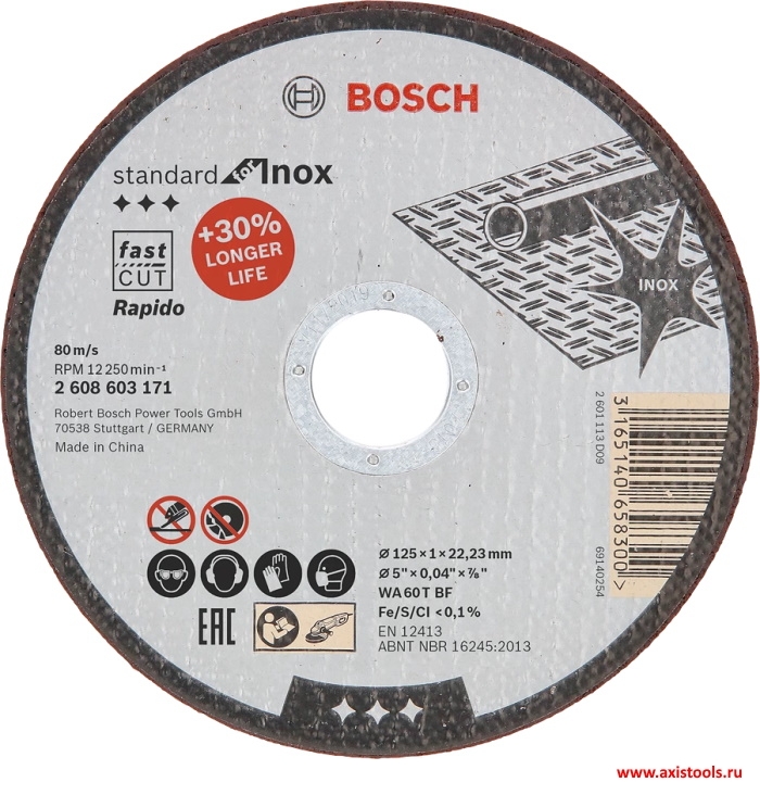 2608603171 Отрезной круг Standard for Inox - Rapido 125х1 мм по нержавейке прямой