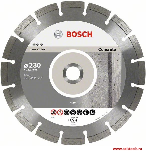 Алмазный диск Standard for Concrete 2608603243 - это экономичное решение, не уступающее в качестве и надежности более дорогим вариантам оснастки!