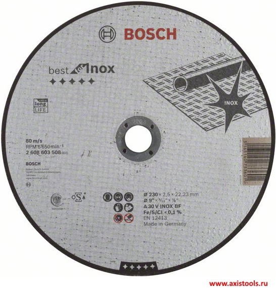 Отрезной круг Best for Inox 230х2.5 мм по нержавейке прямойBosch Best for Inox 230х2.5 ммBosch26086035082 608 603 5082.608.603.50831651407336010.240https://www.axistools.ru/images/2608603508.jpgОтрезной круг Best for Inox 230х2.5 мм по нержавейке прямой (2 608 603 508, 2608603508, 2.608.603.508)https://www.axistools.ru/2608603508.html
